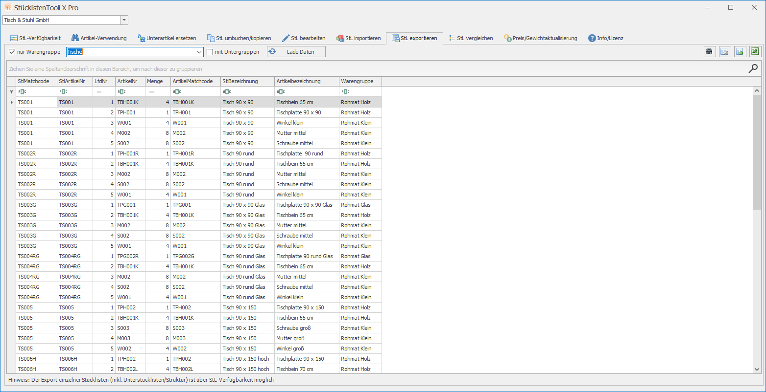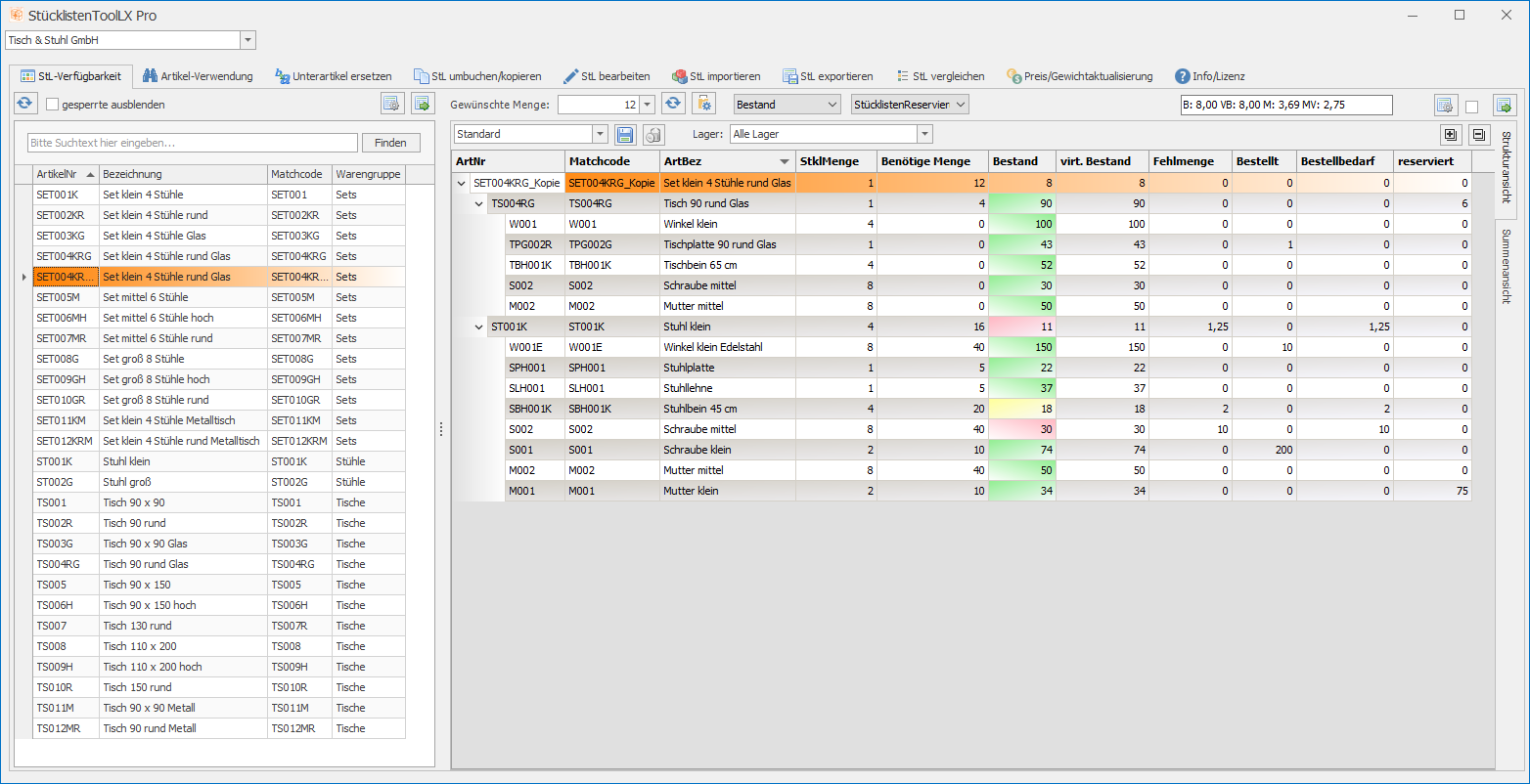StücklistenToolLX Pro bietet Informationen, Auswertungen und Funktionen rund um die Stücklisten in Lexware Warenwirtschaft Pro und Premium (und Financial Office Pro und Premium). Folgende Funktionen sind aktuell enthalten: