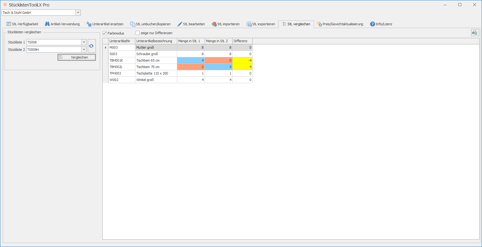 - Stücklistenvergleich, Erweiterung Unterartikel ersetzen