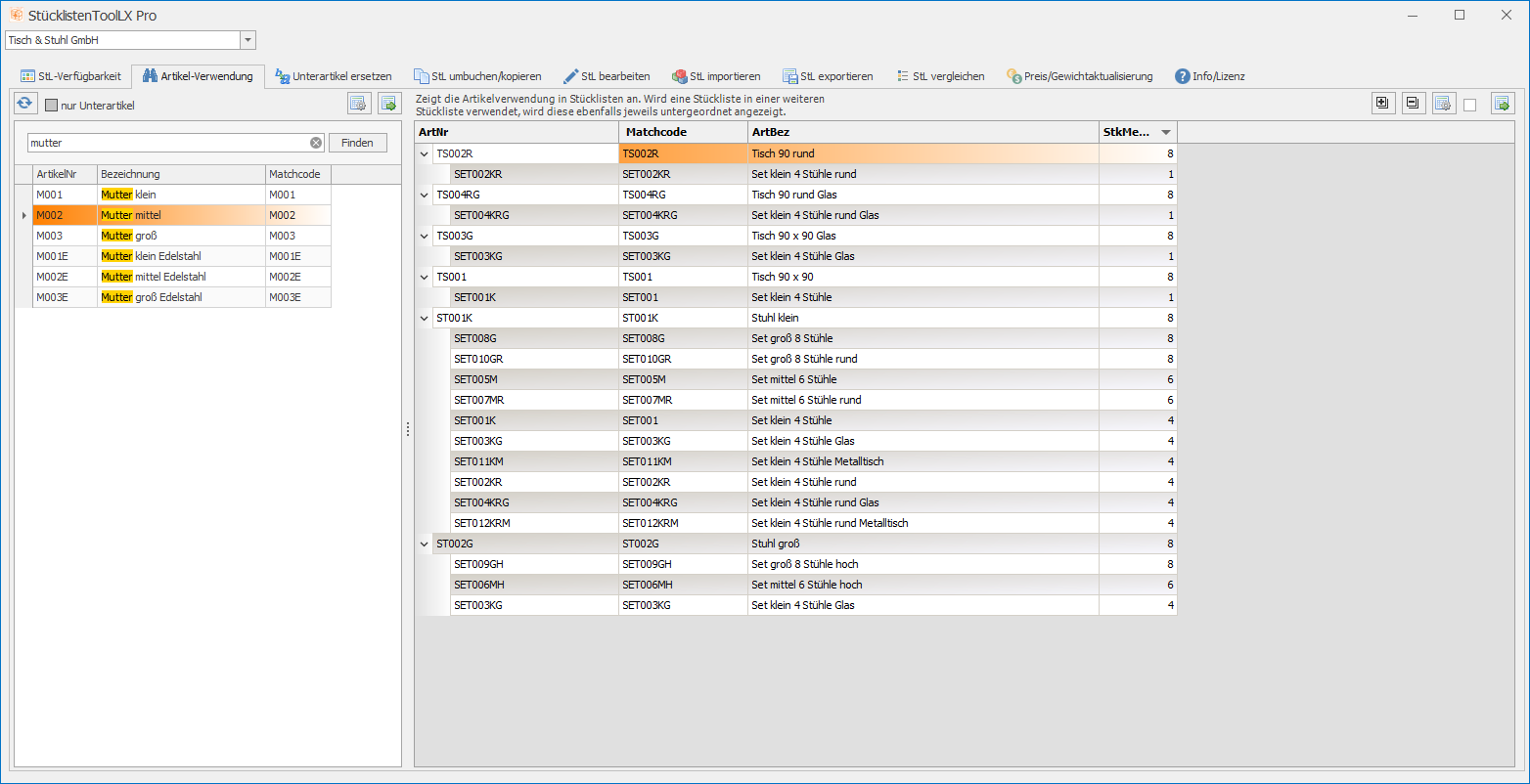 - Stücklistenübergreifende Ersetzung von Unterartikeln